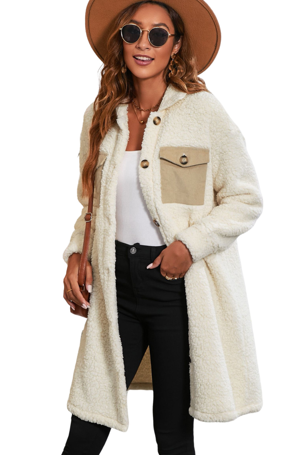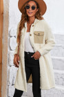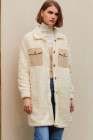 ベージュ コントラスト フラップポケット シングルブレスト テディコート