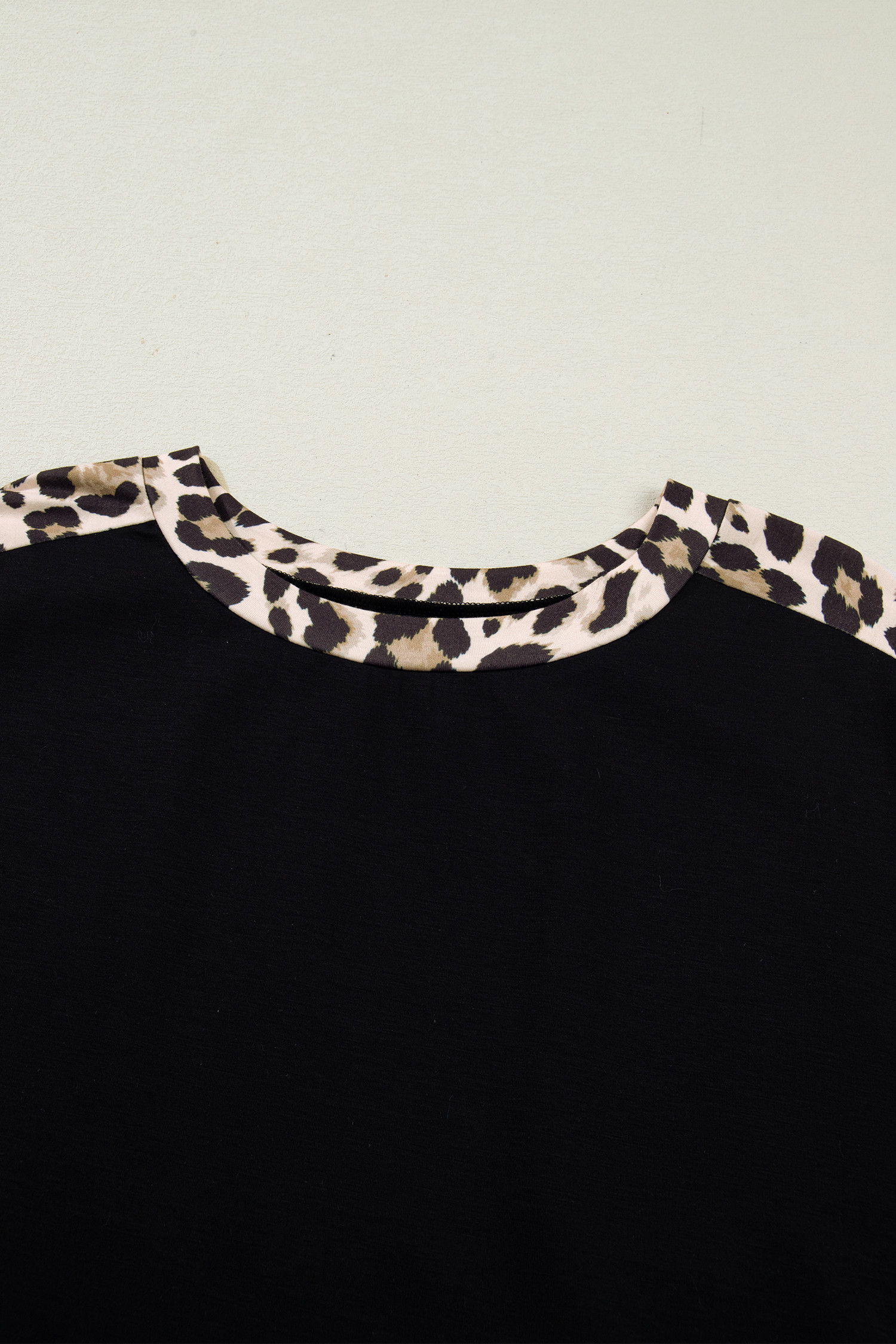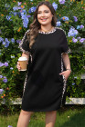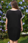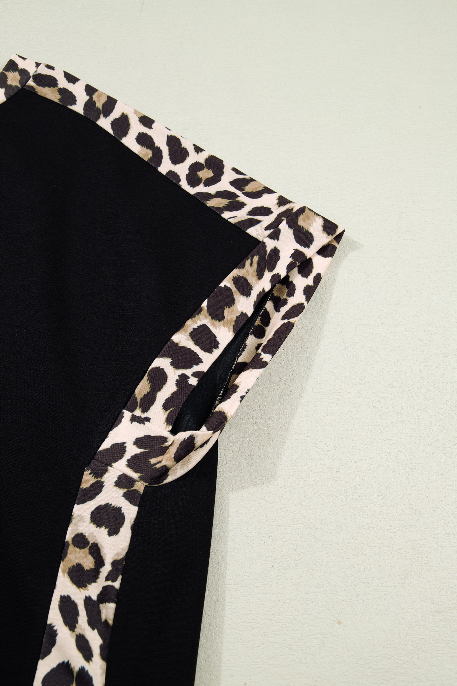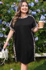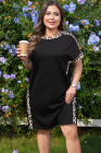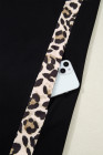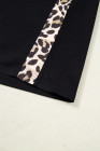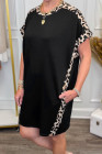 ブラック プラスサイズ ヒョウ柄 パッチワーク シフトTシャツドレス ポケット付き