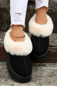 ブラック コントラスト プリント スエード プラッシュ ライニング スノー ブーツ