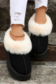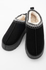 これらのブラック スエード コントラスト プリント ラウンド トゥ プラッシュ 裏地付きフラットシューズは、スタイリッシュで居心地の良いデザインです。