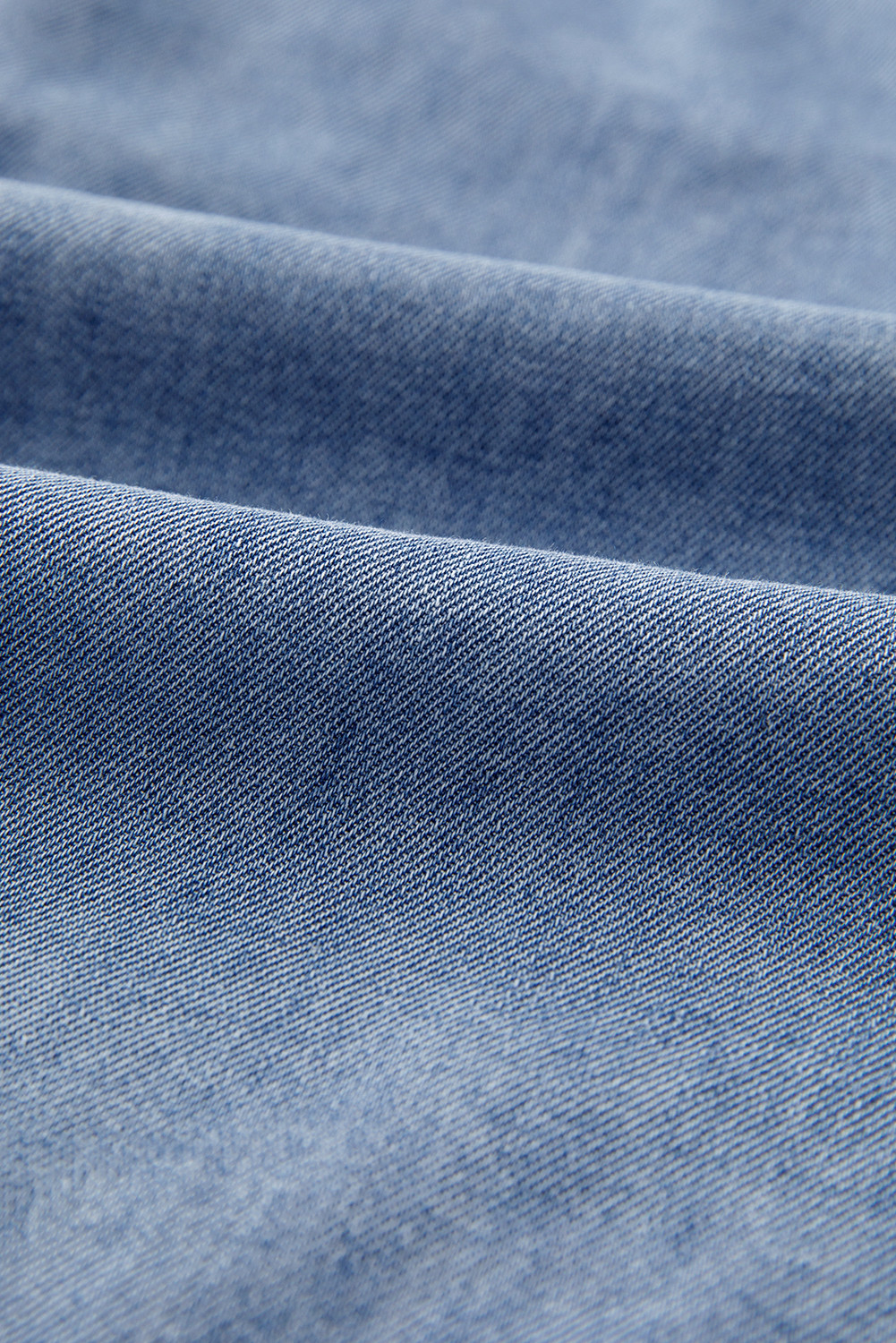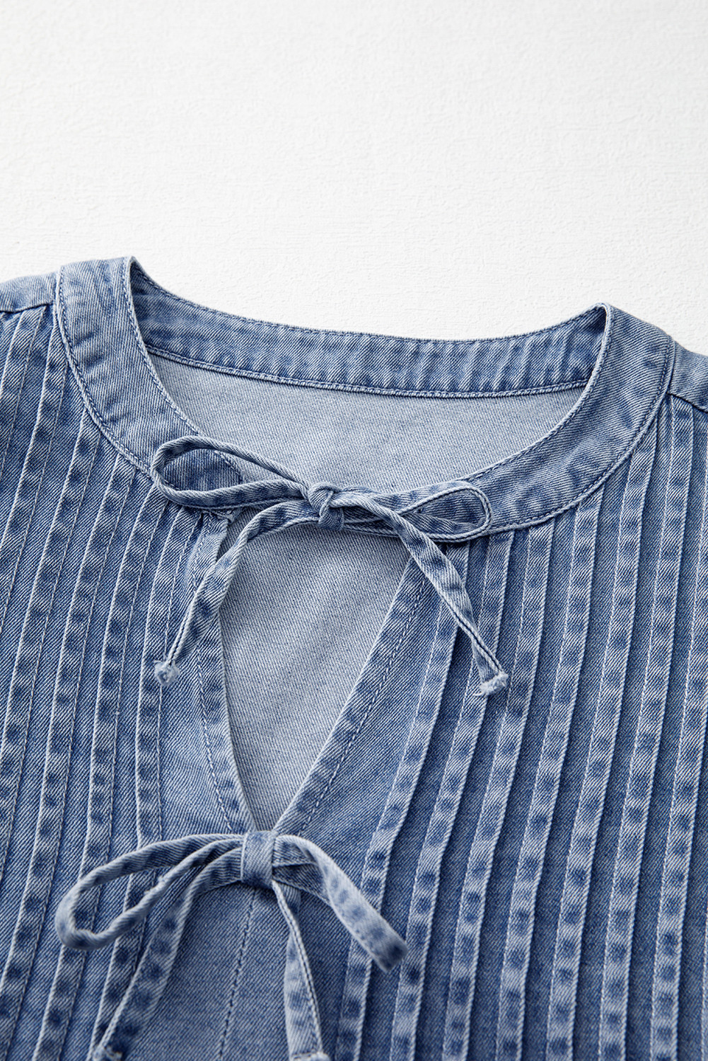 ミオソティス デニム フロント ピンタック ボウタイ パフスリーブ トップス