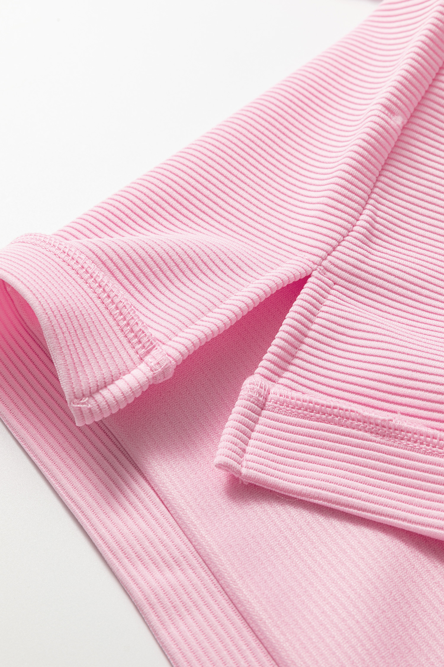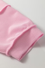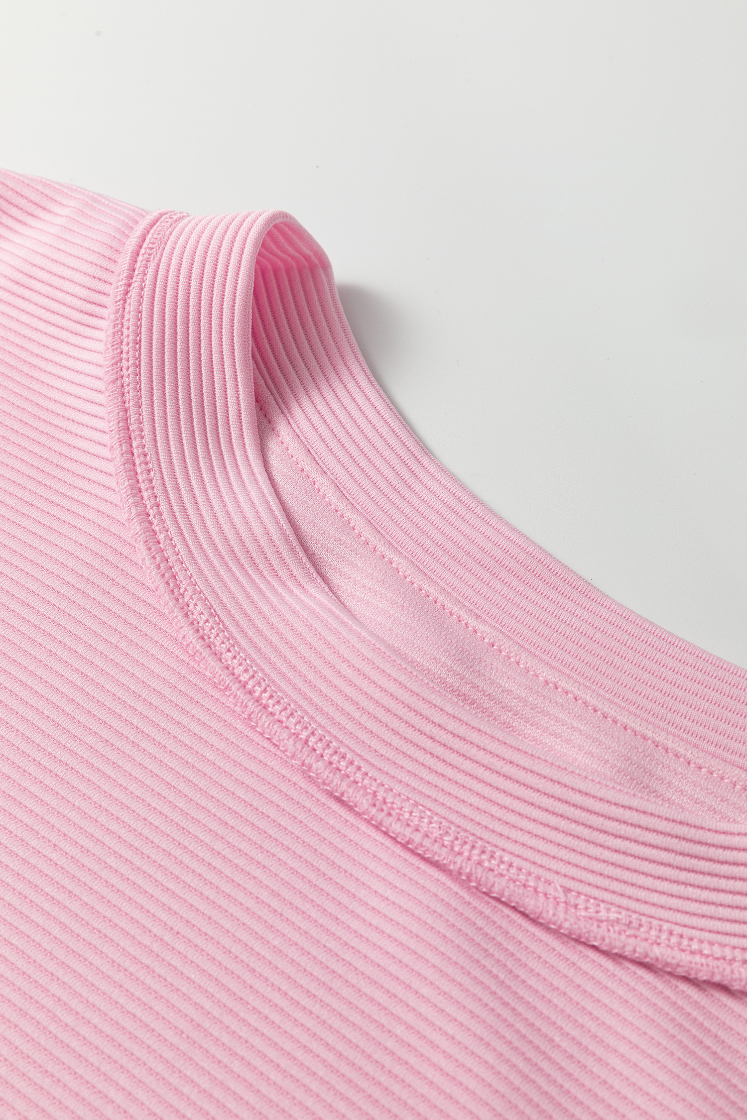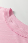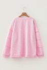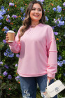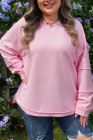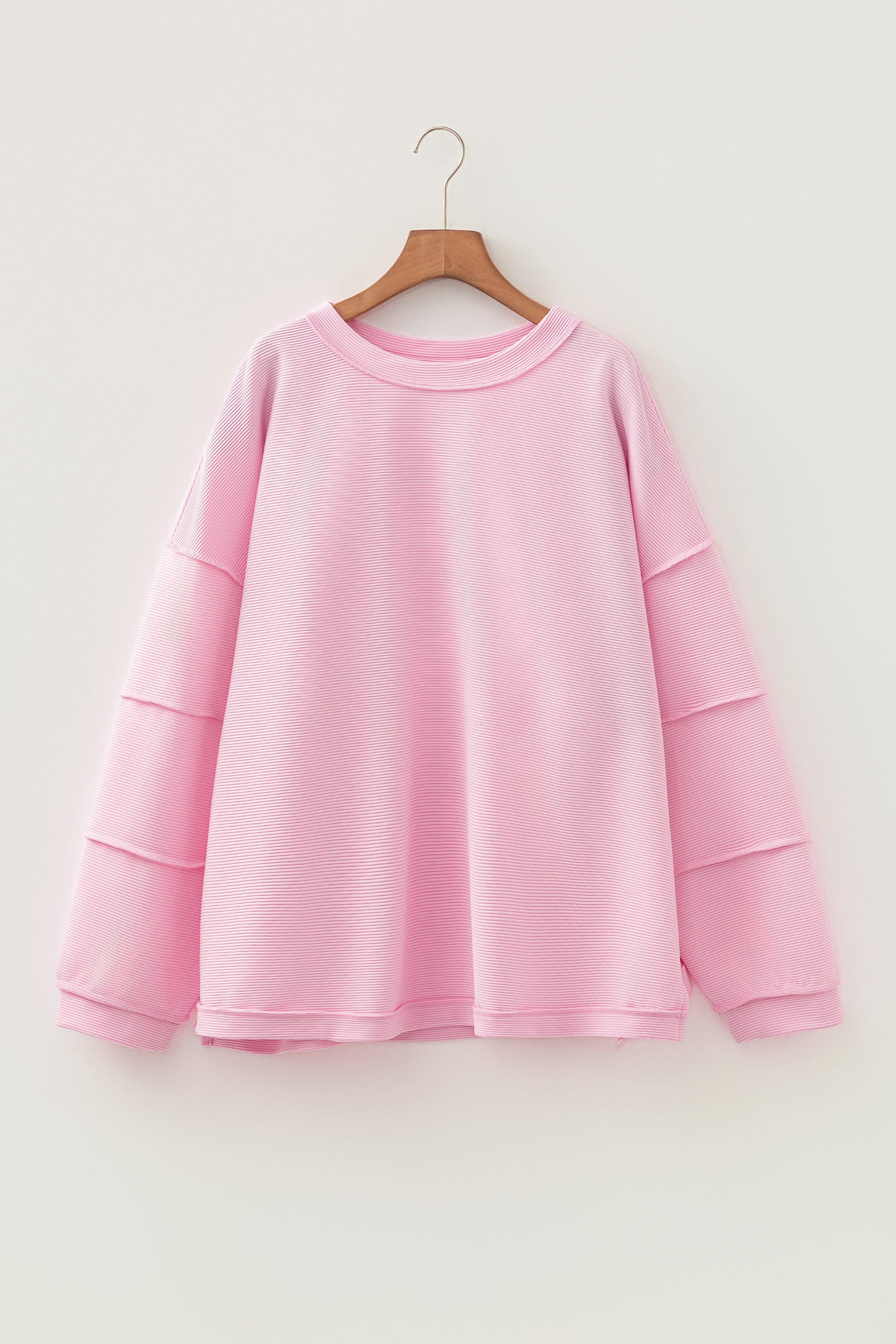 ピンクのドロップショルダー長袖プラスサイズリブトップス
