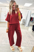 レーシングレッドドロップショルダーボックスTシャツとバレルパンツのセット
