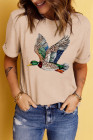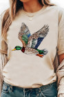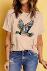 ホワイトフライングマラードプリントクルーネックTシャツ